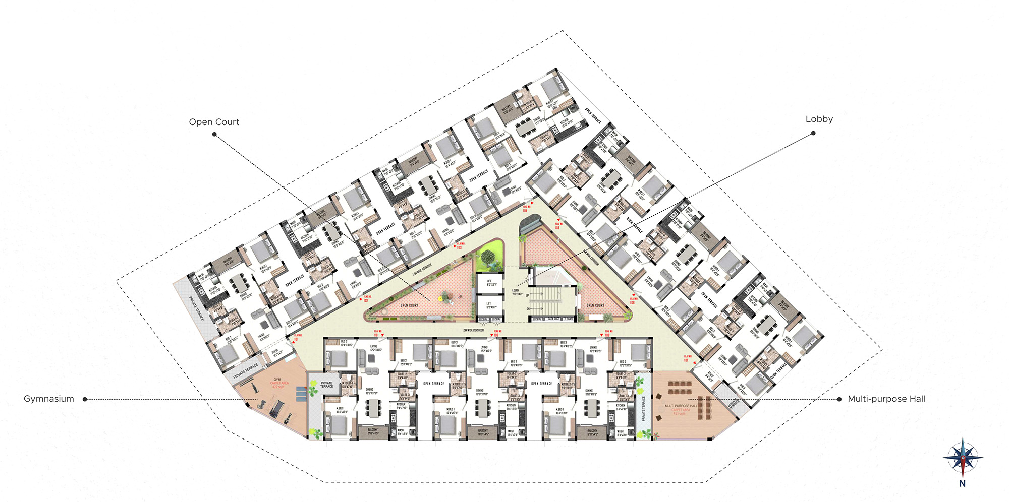 Enjoy a premium lifestyle with V3F lifts, DG backup, solar-lit common spaces, biometric lobby access, a well-equipped gym, vibrant kids’ play area, and a versatile multipurpose hall—crafted to keep you active, secure, and comfortable daily.