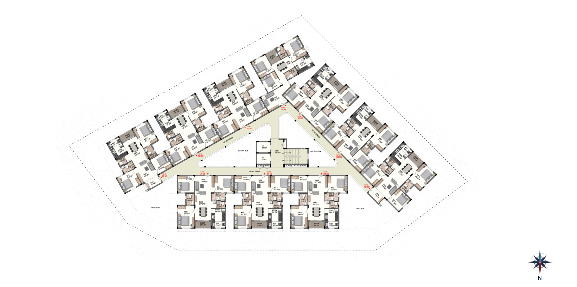 Nestled across 15 grounds and 14 elegant floors , Blue Jewel is reserved for just 55 discerning families who seek more than just a home — they seek a lifestyle. With privacy, elegance, and panoramic views built into every detail, with just two apartments per floor, there’s no corridor noise, no crowd — only you, your neighbour, and 360° of unshared light and air. Blue Jewel redefines exclusivity and privacy in high-rise living