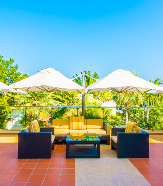 Rooftop lounge for social relaxation.